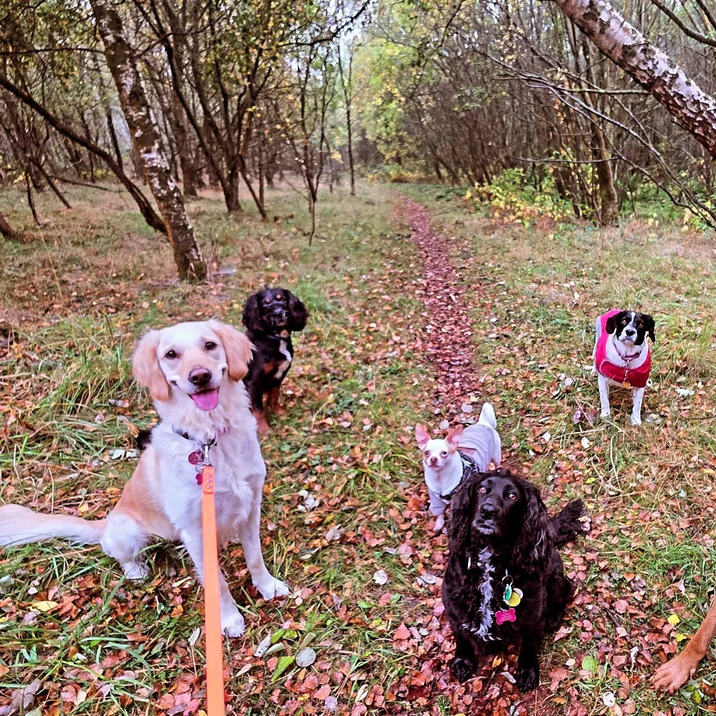 ''Poppy is a nervous dog and we were worried about how she would settle. Kim came to visit Poppy at home and she chatted over how she would work with Poppy to reduce her anxieties. Kim arranged to take Poppy out for a shorter walk just to settle her in. Now Poppy just loves when Kim comes to collect her as she knows she’s off out for a day of fun and adventures with all her doggy friends''